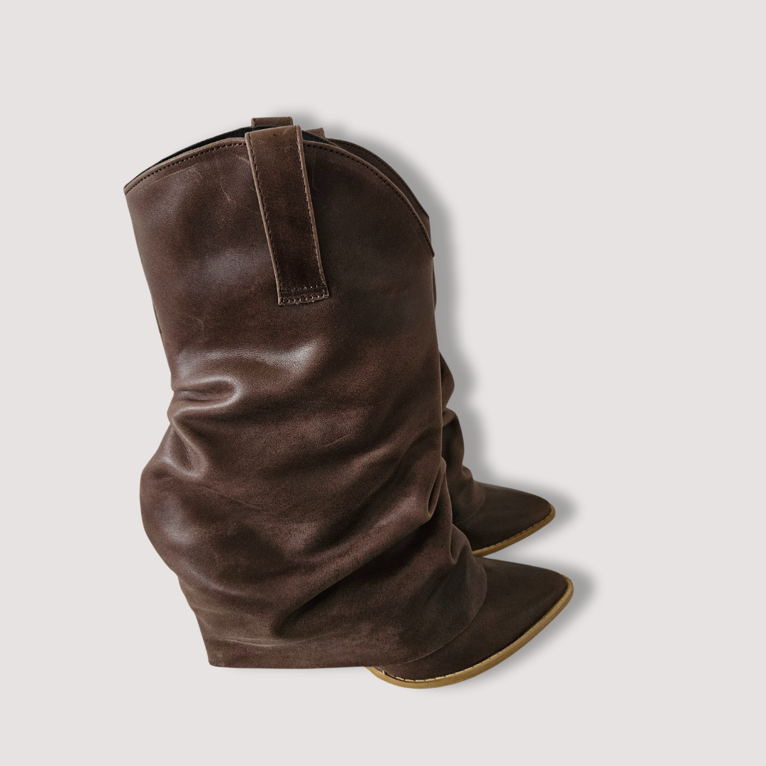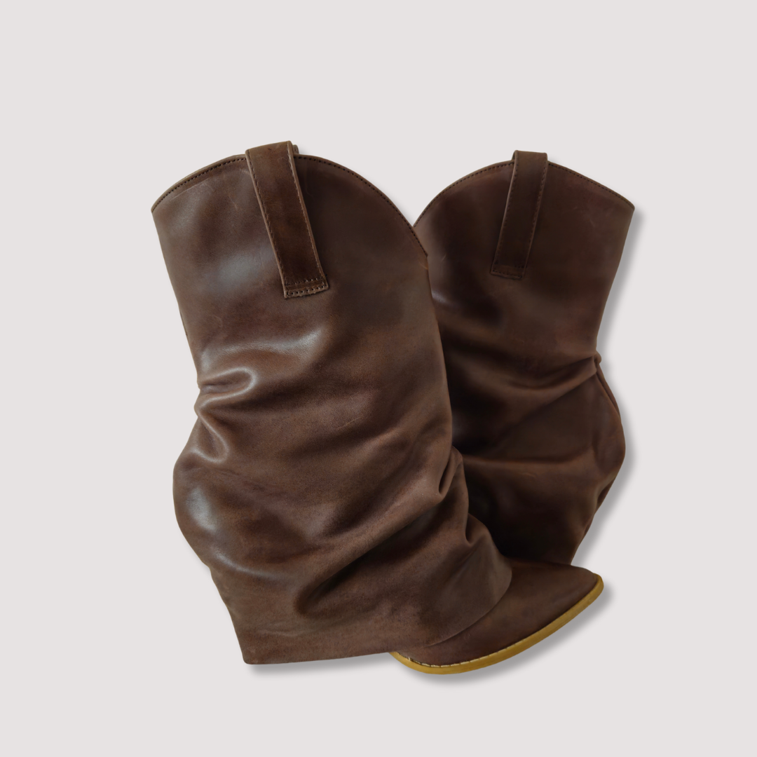 Experimenta la combinación perfecta de estilo y durabilidad con estas increíbles botas artesanales. Corte vacuno, tubo media pantorrilla. Con tacón de vaqueta natural de 8 cms y suela de piel antiderrapante. Estas botas no solo lucen espectaculares, sino que también te brindarán la confianza y comodidad que necesitas para conquistar cualquier terreno. ¡Haz una declaración de moda con estas botas únicas en su clase!